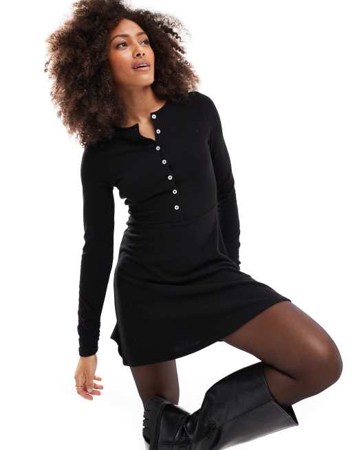 ASOS DESIGN - Robe courte boutonnée à manches longues et jupe fluide - Noir