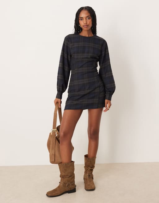 ASOS DESIGN - Robe courte cintrée à manches longues et carreaux - Bleu