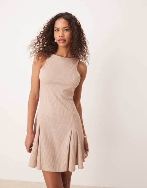 ASOS DESIGN - Robe courte côtelée coupe patineuse fluide - Crème