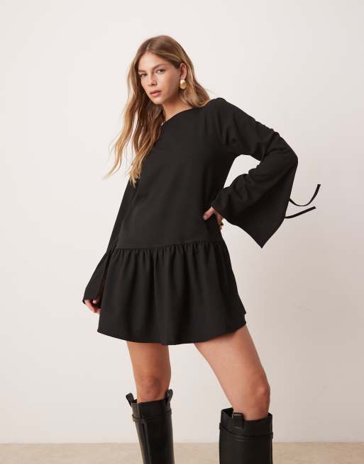 ASOS DESIGN - Robe courte coupe ajustée puis évasée avec taille basse - Noir