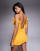 ASOS DESIGN - Robe courte effilochée nouée dans le dos à volants - Jaune
