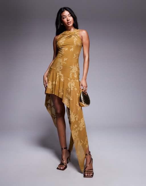 ASOS DESIGN - Robe courte en dévoré à ourlet mouchoir - Bronze