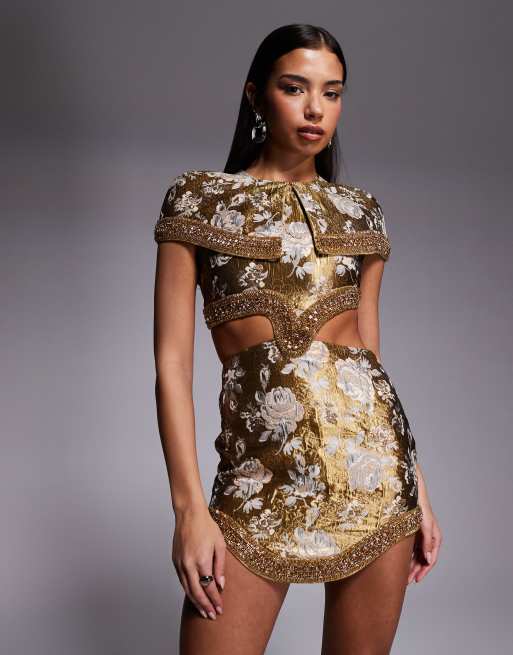 ASOS DESIGN - Robe courte en jacquard avec cape et ourlet structuré - Doré