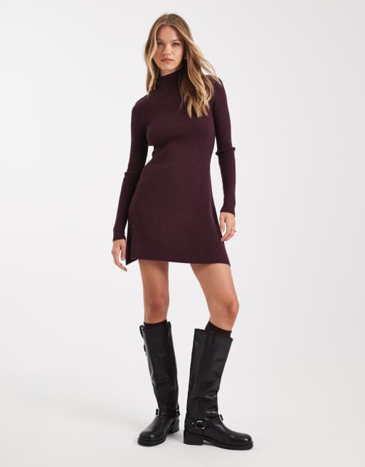 ASOS DESIGN - Robe courte en maille fine avec détails côtelés - Prune