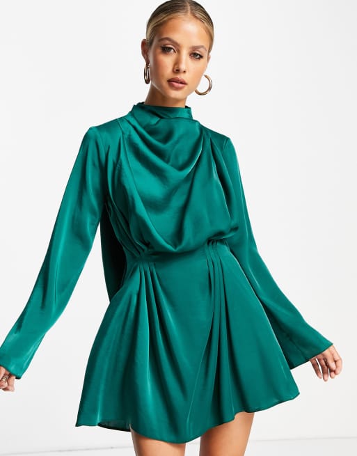 ASOS DESIGN - Robe courte en satin à encolure drapée avec plis et dos ouvert - Vert forêt