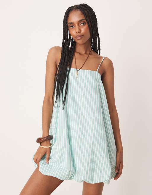 ASOS DESIGN - Robe courte et bouffante à rayures et bretelles fines - Vert