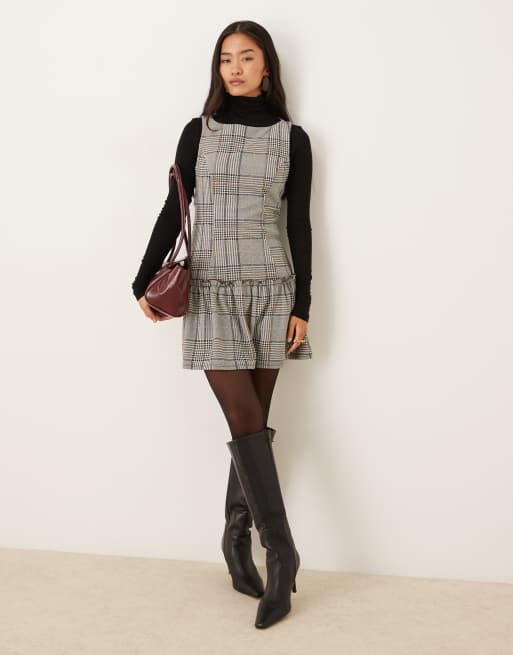 ASOS DESIGN - Robe courte et sans manches à carreaux avec taille basse et encolure bateau - Gris
