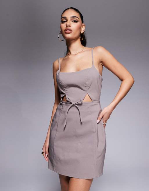 ASOS DESIGN - Robe courte et structurée avec découpes et détail nœud - Moka