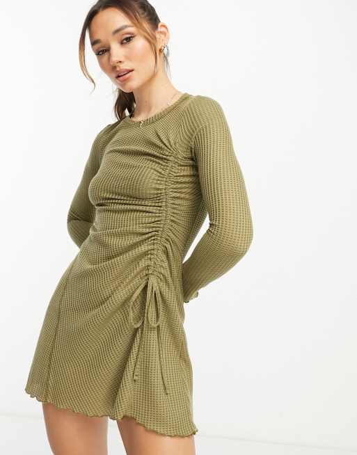 ASOS DESIGN - Robe courte froncée sur le côté en tissu gaufré - Kaki