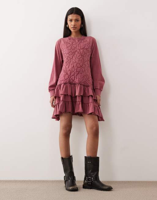 ASOS DESIGN - Robe courte molletonnée matelassée de qualité supérieure - Rose foncé