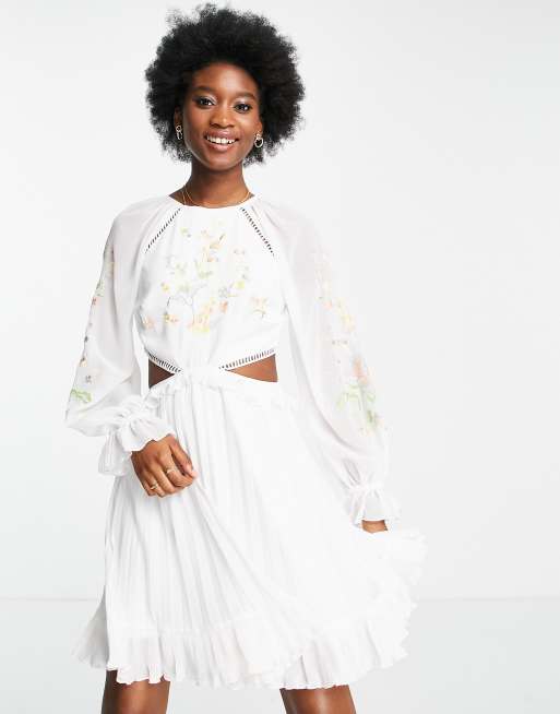 ASOS DESIGN - Robe courte plissée et brodée avec découpes sur le côté - Blanc