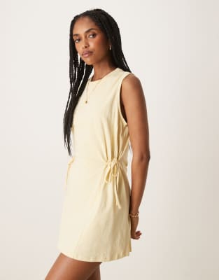 ASOS DESIGN - Robe courte sans manches à taille cintrée - Citron