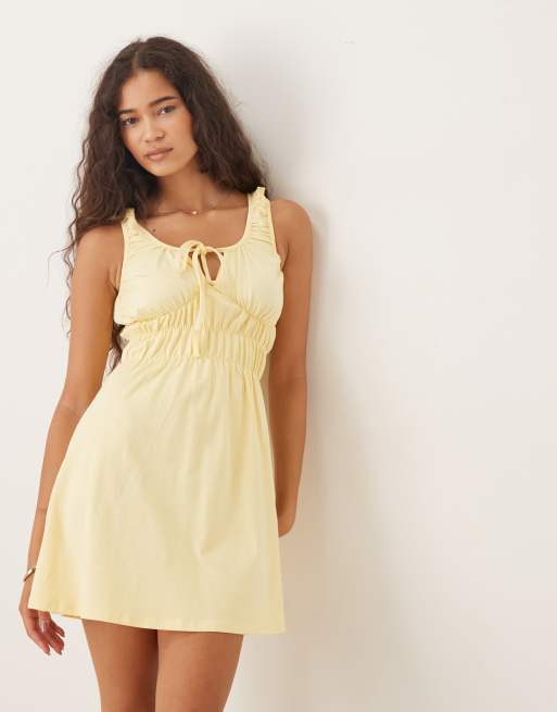 ASOS DESIGN - Robe courte styel champêtre à buste froncé - Jaune