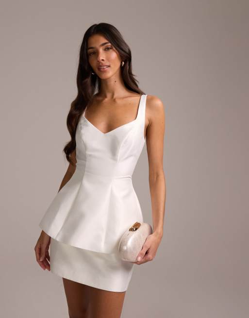 ASOS DESIGN - Robe de mariée courte structurée à basque - Ivoire