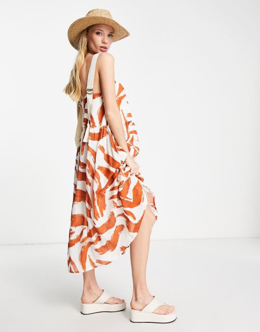 ASOS DESIGN - Robe d'été boutonnée mi-longue à imprimé abstrait et bretelles en gros-grain