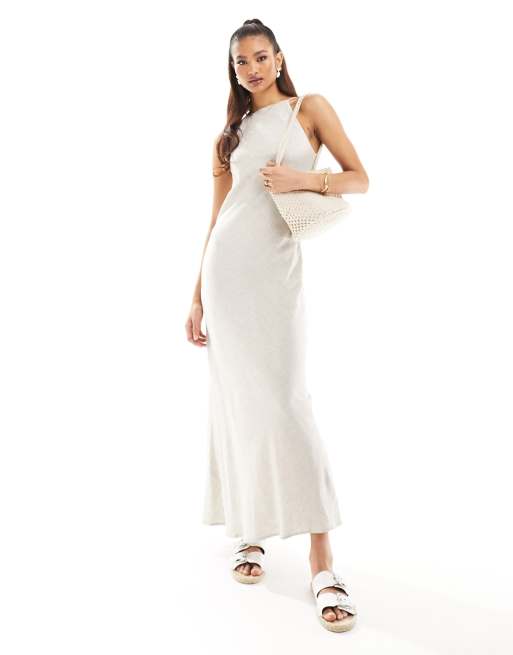 ASOS DESIGN - Robe d'été longue en lin coupe nageur - Avoine