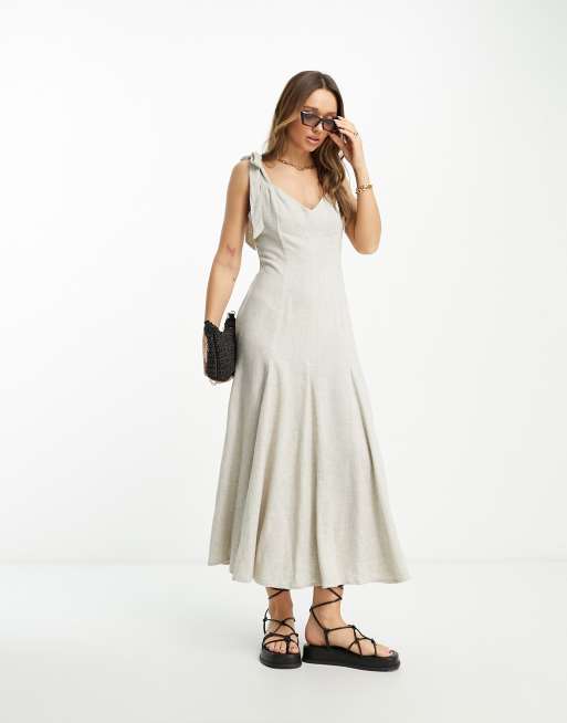 ASOS DESIGN - Robe d'été longue fluide en lin avec liens à nouer et godets - Naturel