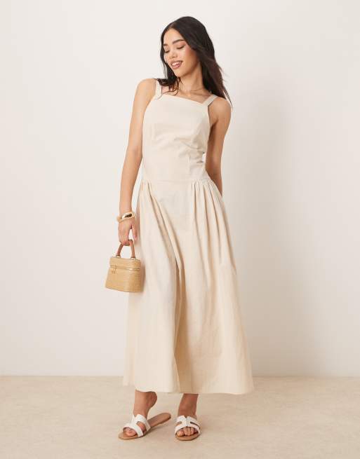 ASOS DESIGN - Robe d'été mi-longue à encolure carrée et taille basse - Avoine