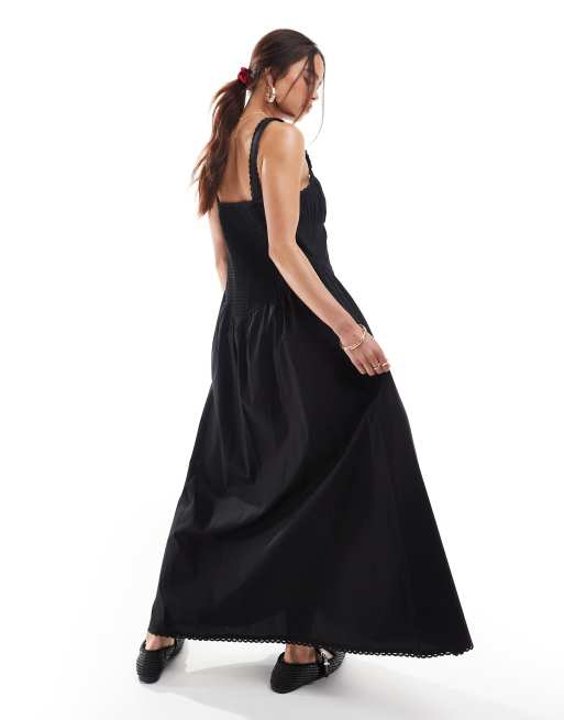 ASOS DESIGN - Robe d'été mi-longue avec corsage corseté et finitions en dentelle - Noir