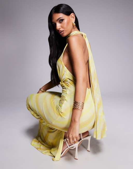 ASOS DESIGN - Robe dos nu longue en tulle à rayures floues avec encolure nouée au dos et détail torsadé sur le buste