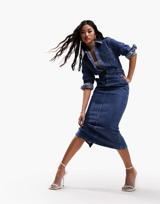 ASOS DESIGN - Robe en jean mi-longue - Délavage moyen