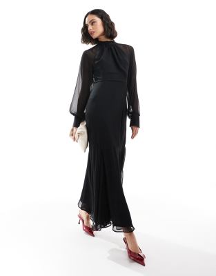 ASOS DESIGN - Robe longue à col montant avec jupe à godets - Noir