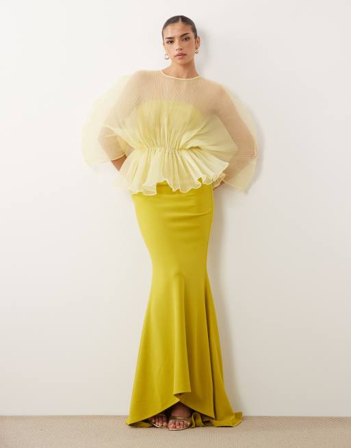 ASOS DESIGN - Robe longue à corsage plissé en crépon stretch contrastant - Vert