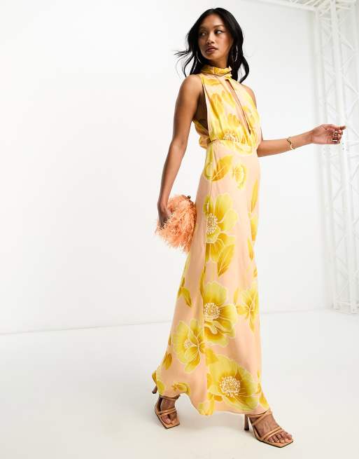 ASOS DESIGN - Robe longue à décolleté plongeant et encolure américaine - Imprimé floral