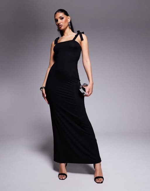 ASOS DESIGN - Robe longue à encolure carrée et détail noué - Noir