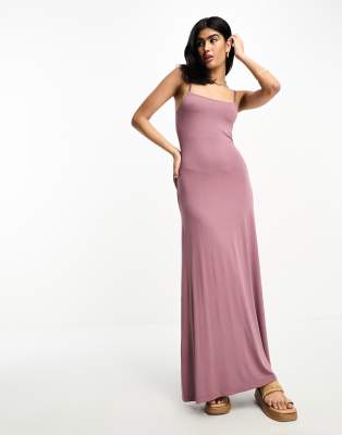 ASOS DESIGN - Robe longue à encolure carrée et fines bretelles - Mauve