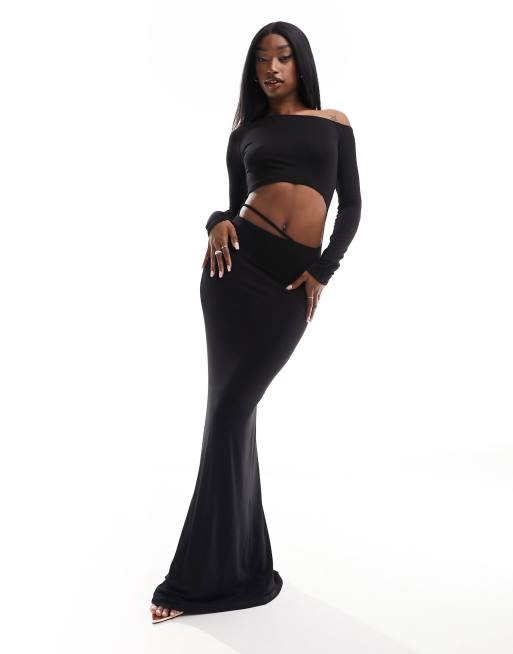 ASOS DESIGN - Robe longue à épaules dénudées avec découpe à l'avant - Noir
