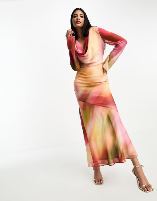 ASOS DESIGN - Robe longue à fleurs et col bénitier en mousseline marbrée