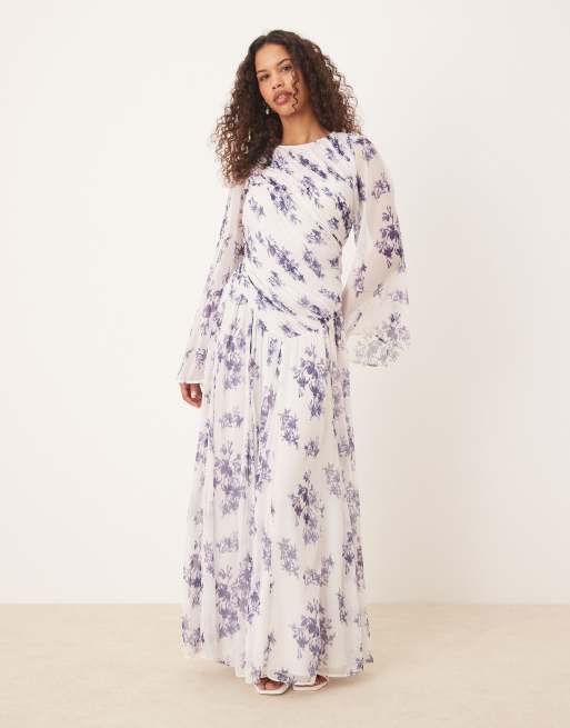 ASOS DESIGN - Robe longue à imprimé fleuri avec dos nu et taille basse asymétrique - Violet