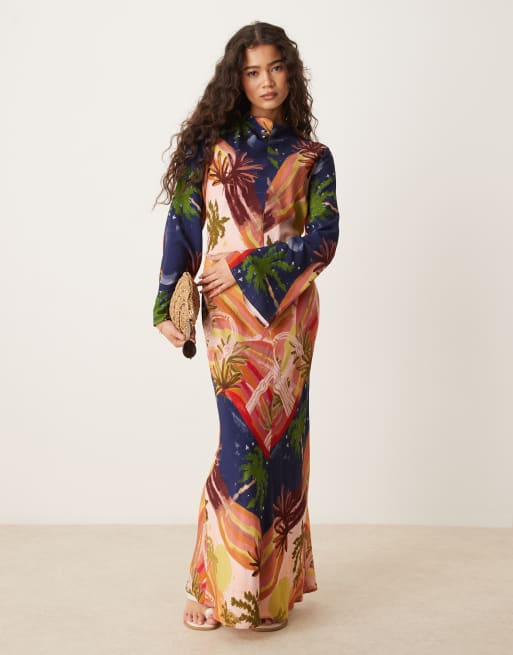 ASOS DESIGN - Robe longue à imprimé vacances et encolure bateau