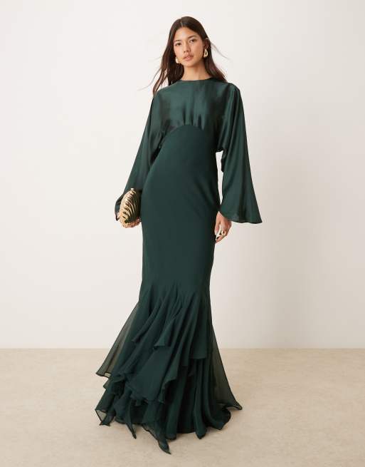ASOS DESIGN - Robe longue à manches cape et godets - Vert forêt