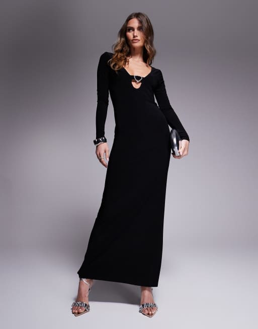 ASOS DESIGN - Robe longue à manches longues et à détail cœur avec découpe goutte d'eau - Noir