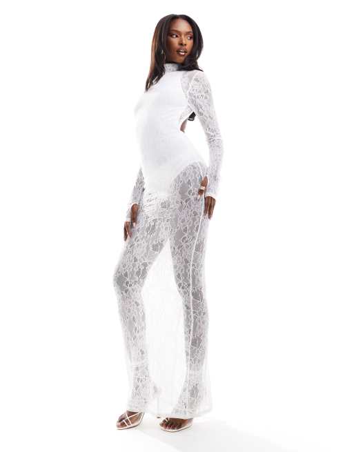 ASOS DESIGN - Robe longue avec body et superposition en dentelle - Ivoire