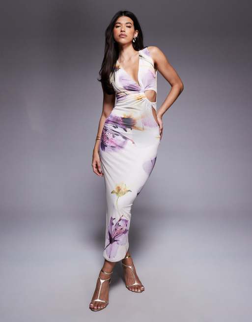 ASOS DESIGN - Robe longue avec fronces, découpes et décolleté plongeant - Imprimé fleuri