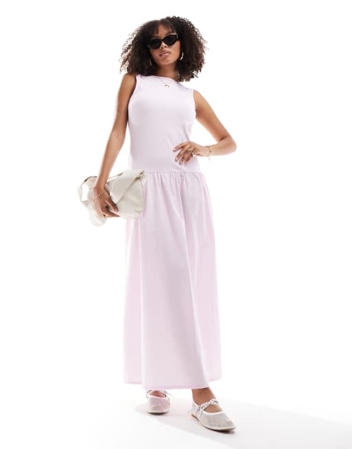 ASOS DESIGN - Robe longue avec jupe en popeline - Rose clair