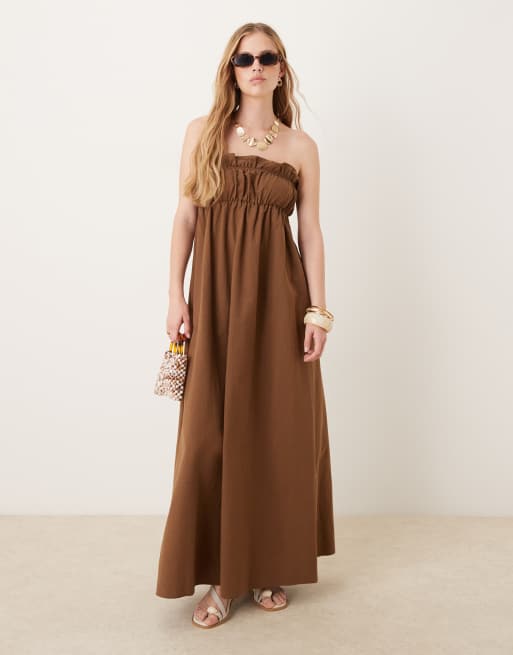 ASOS DESIGN - Robe longue avec volants sur le buste - Chocolat profond