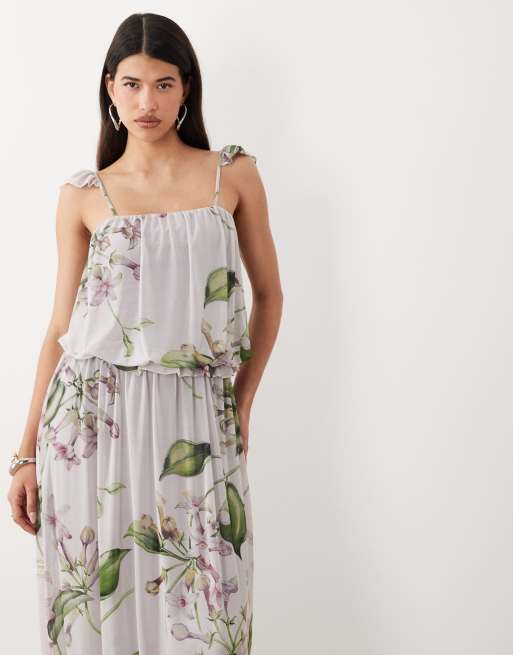 ASOS DESIGN - Robe longue boule en tulle à imprimé floral