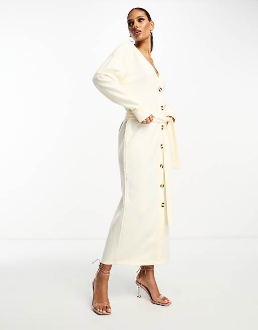 ASOS DESIGN - Robe longue boutonnée ultra douce style gilet à ceinture - Blanc neige