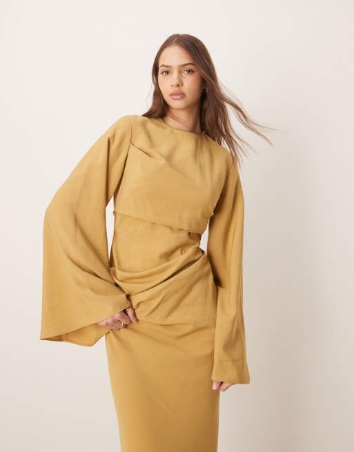 ASOS DESIGN - Robe longue cintrée à manches longues - Or pâle