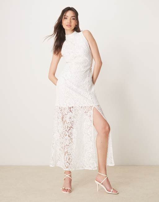ASOS DESIGN - Robe longue col montant sans manches en dentelle - Blanc