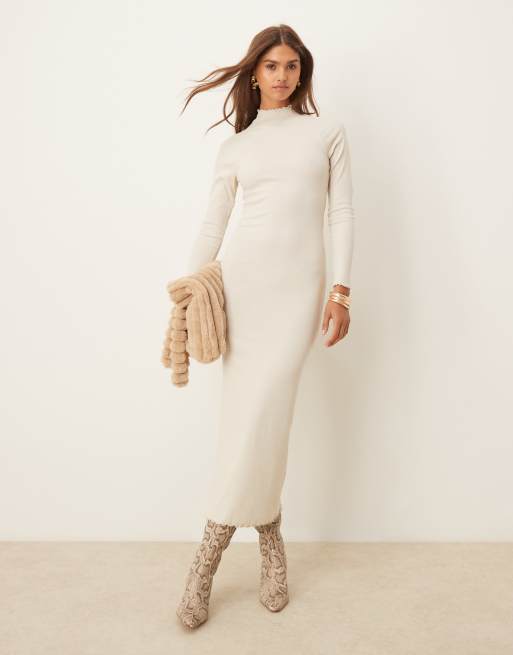 ASOS DESIGN - Robe longue côtelée à col montant et manches longues - Avoine