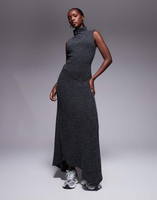ASOS DESIGN - Robe longue côtelée col haut avec ourlet asymétrique