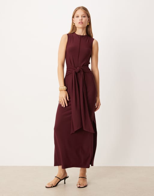 ASOS DESIGN - Robe longue de qualité supérieure sans manches nouée devant - Bordeaux