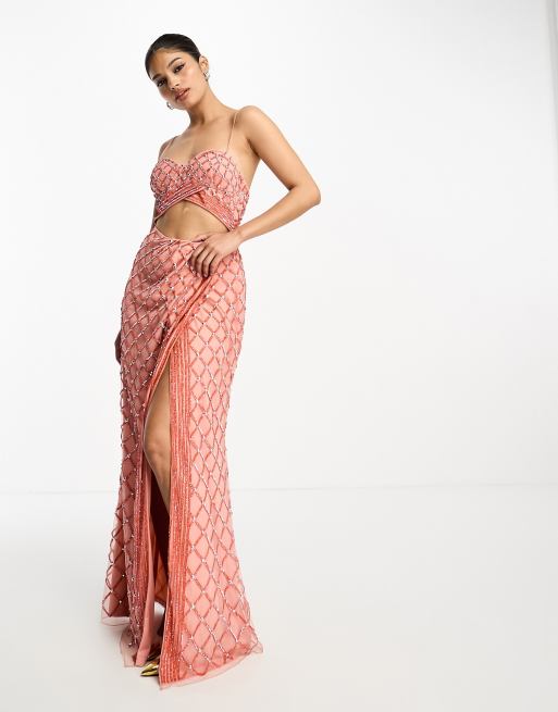 ASOS DESIGN - Robe longue deux pièces ornementée de sequins - Corail