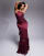 ASOS DESIGN - Robe longue dos nu en satin et mousseline avec ourlet à volants - Prune