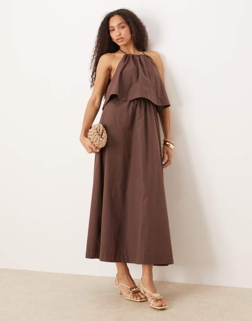 ASOS DESIGN - Robe longue double épaisseur avec dos nu - Chocolat